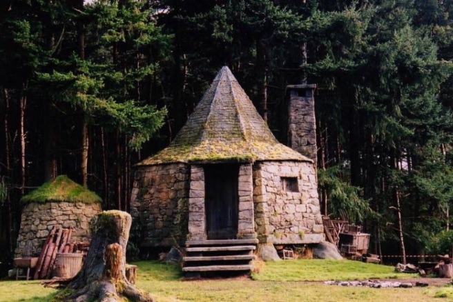 Hagrid’s Cabin. It doesn’t have to be with Hagrid, but it doesn’t have to not be with Hagrid, either. He is half-giant, you know.