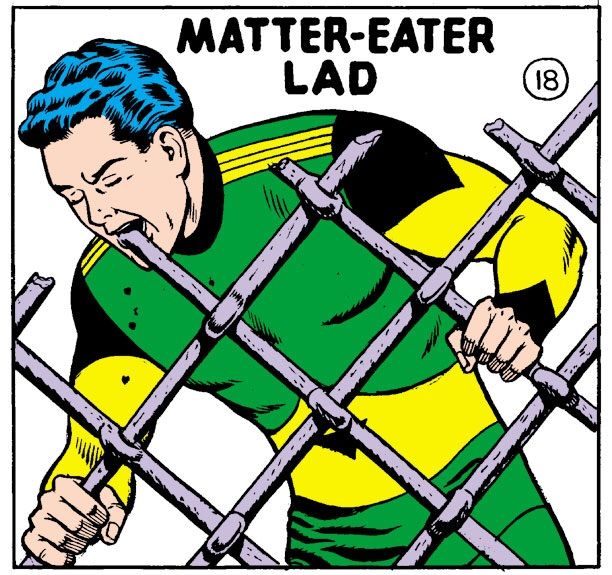 Matter-Eater Lad is a lad who can eat matter. Like, any of it. Hammers, chain link fences, wrenches, anything! And he has an excellent physique. I decided to give his diet a try, and I dropped down four pant sizes in a matter of weeks—all thanks to a superhero I only sort of like.
