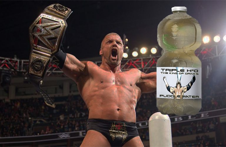 Passed down from generation to generation of Helmsleys, the pedigree and taste of Triple H2O Inheritance Water is truly fit for a king of kings. Composed of the precious bodily fluids of Triple H’s ancestors, Inheritance Water is a delicacy for only the truly sophisticated. The high sodium content brings out the natural flavor of privilege, quenching any thirst you might have to share a sip, and it only costs one bitcoin per bottle.